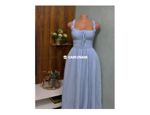 Refresh your wardrobe with this high-quality light blue dress, featuring ruffled straps and a charming gathered bodice with a tie detail at the center. Perfect for large and extra-large sizes, this dress is a versatile piece suitable for daytime outings, casual gatherings, or semi-formal events. A classic blend of style and comfort!